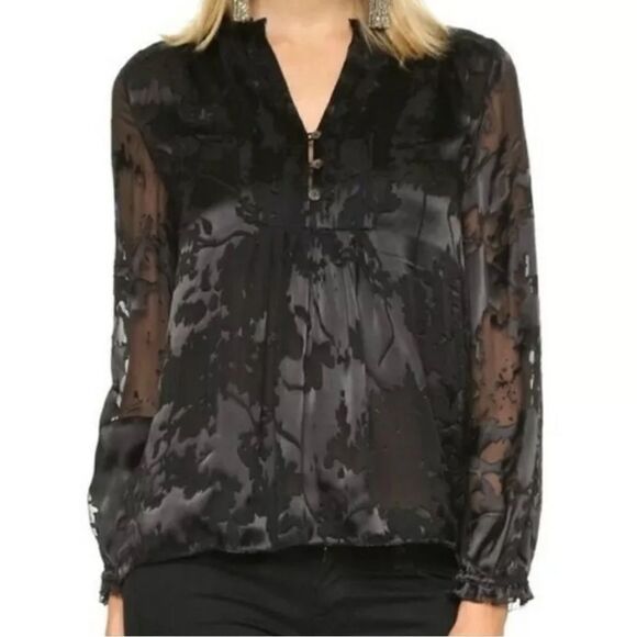 Diane Von Furstenberg Annalise V-neck Ruffle Silk Blend Blouse.