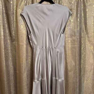 Brand new with tags, smoke and pet free home. No flaws at all, this dress is perfect. The color is called Storm and is like a gorgeous Champagne color. Feels absolutely amazing. Some stretch too, and a side zipper. Perfect for a special occasion, wedding guest dress, graduation or special event. Very classy. Retails for $648 no longer sold. Cap sleeves, ruched drop waist and flowing skirt with insert panels.