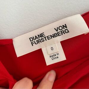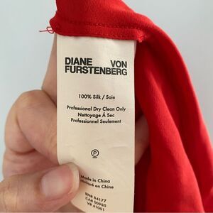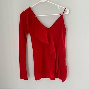 Diane Von Furstenberg Women’s Red Ruffled Asymmetric Silk Blouse