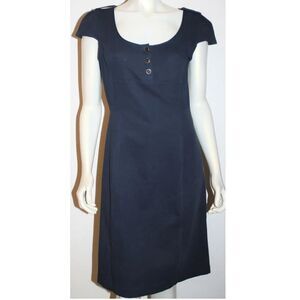 Diane Von Furstenburg Dominette Navy Blue Cap Sleeve Scoop Neck Stretch Knee Length Dress