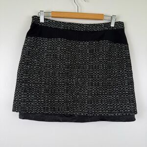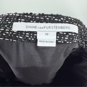 Diane von Furstenberg 10 Coletta -Leather-Bonded Trim Raffia Tweed Mini Skirt