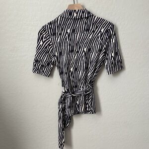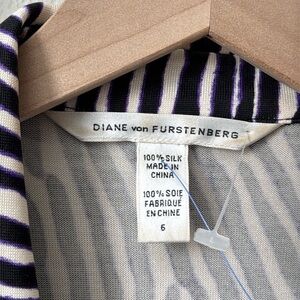 Diane von Furstenberg 100% Silk Abstract Wrap Top Purple Black Size 6