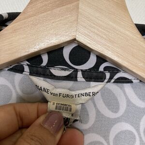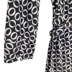 Diane von Furstenberg 100% Silk Black White Circle Long Sleeve Wrap Dress Size 4