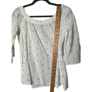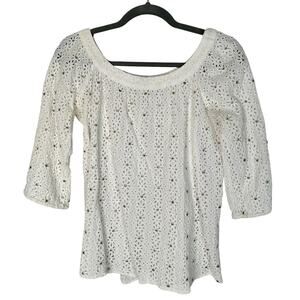 Diane von Furstenberg 6 Anthropologie Beaded Eyelet Top Bohemian Blouse White