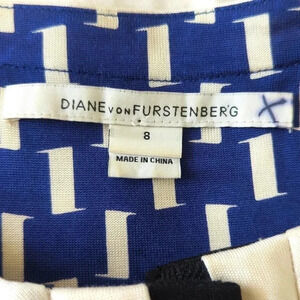 mod DVF dress drapes a reissued print in soft, mid-weight silk jersey. Solid trim outlines the crew neck and the two- tone placket, which fastens with hidden snaps. On-seam pockets hide along the side seams and 3/4 sleeves end with banded cuffs. Unlined. Fabric: Mid- weight silk jersey. Shell: 100% silk. Trim: 70% silk/30% viscose.