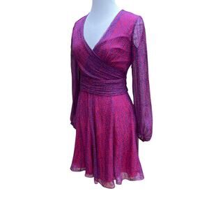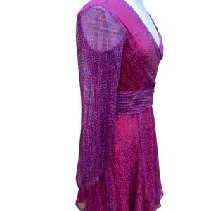 Diane von Furstenberg Ashlynn Silk Dress Pink Purple Sheer Long Sleeve Size 4