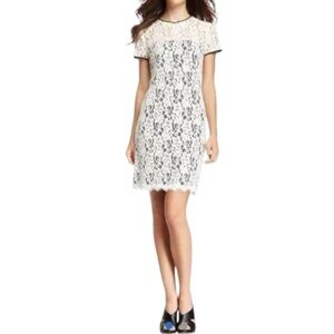 Diane von Furstenberg Barbie Lace Overlay Stretch Dress - Ivory Black - Size 10