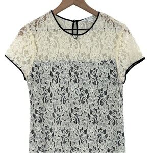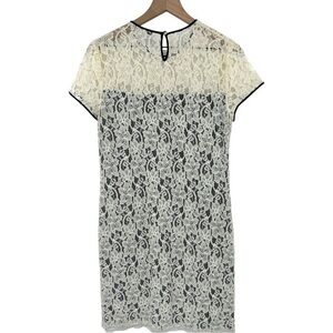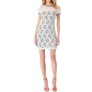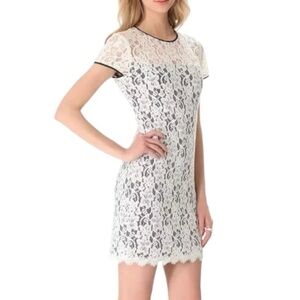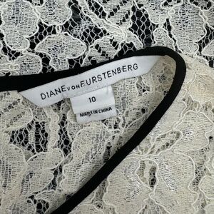 Diane von Furstenberg Barbie Lace Overlay Stretch Dress - Ivory Black - Size 10