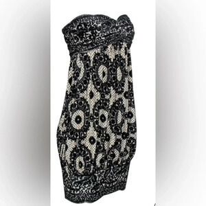 Diane von Furstenberg Black Cream Print Velvet Strapless Dress Women XS