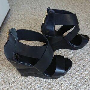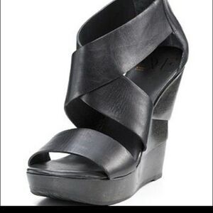 Diane von Furstenberg Black Leather Opal Crisscross Wedge Sandals