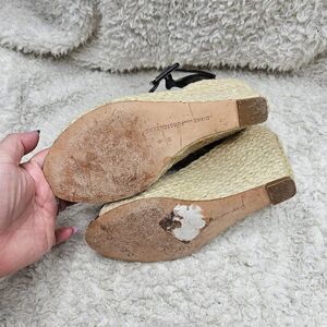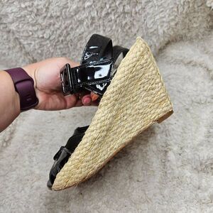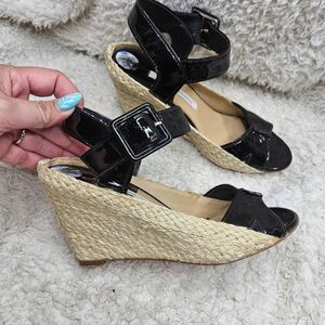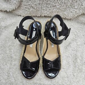 Diane von Furstenberg Black Patent Leather Espadrille Wedge Sandals sz 6.5