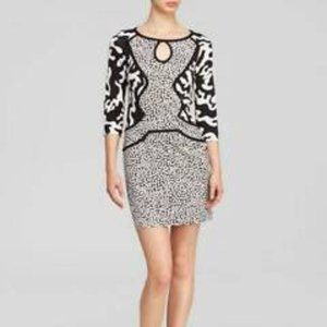 Diane von Furstenberg Black White Rose Heart Firebird Mosaic Silk Mini Dress 8