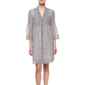 - Three-quarter sleeves; pintucked detail; 21"L.