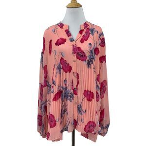Diane von Furstenberg Blouse Womens L Large Poppy Soft Pink Nate Pleated Billowy
