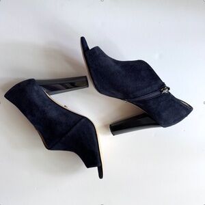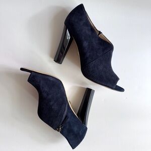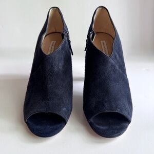 Diane von Furstenberg Blue Suede Peep Toe 4" Heeled Booties Size 9.5