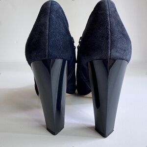 Trust me, you want these shoes! The blue suede is soft and gorgeous, and the peep toe adds just the right amount of flair. Side zips for easy. on/off. But the real showstopper is the 4-inch geometric heel on these babies. Shaped like a diamond, they give you that boost of height while showing off the incredible style these heels bring to your overall look.