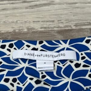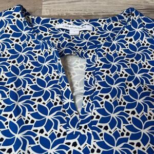 Diane von Furstenberg Blue White Print Stretch Long Sleeve Mini Dress Size 4