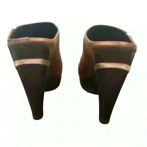 Diane von Furstenberg Brown Leather Clogs black wood Heel Size 7.5
