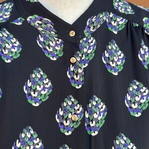 Diane von Furstenberg Button Up Shirt Top Black 100% Silk Long Sleeve Size 2
