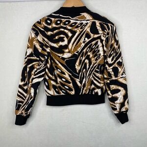 Diane von Furstenberg Caitlyn Quilted Silk Cady Bomber Abstract Black Jacket-XS