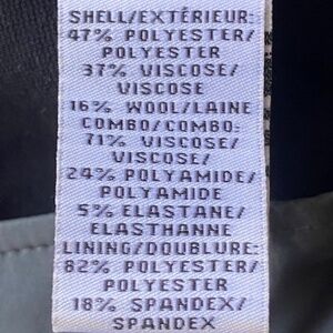 Shell 47% Polyester, 37% Viscose, 16% Wool