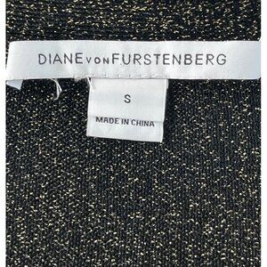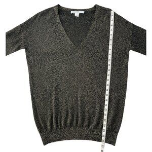 Diane von Furstenberg DVF Black Gold Metallic V-Neck Sweater Oversized Small