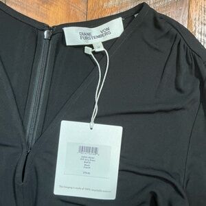 Diane von Furstenberg DVF Black Jersey Dress Midi Long Sleeve Size Medium NWT