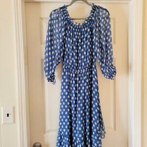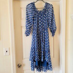 Diane von Furstenberg DVF Camila Two Hi-Low Silk Chiffon Dot Batik Dress, Size 8