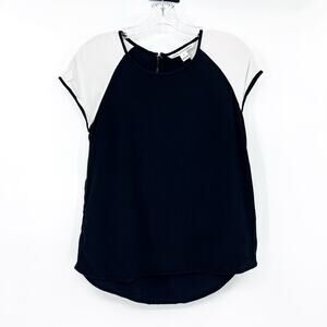 Diane von Furstenberg DVF Liva Colorblock Black White Silk Top Blouse Womens XS
