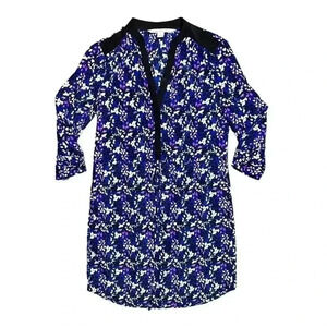 Diane von Furstenberg DVF Silk Tie Waist Dress 0 Mid Length Blue Floral Pockets.
