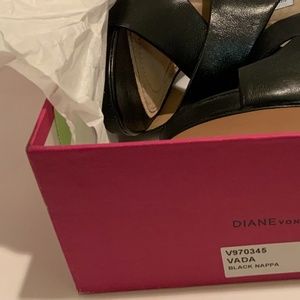 Diane von Furstenberg DVF Vada Black Leather Slingback Sandal Stiletto Heel Pump