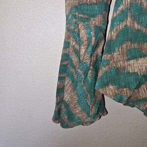 Diane von Furstenberg DVF XS Blouse Green Brown Animal Print Bell Sleeve Button