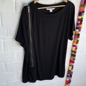 Diane von Furstenberg Black Zipper Tee Shirt sz S