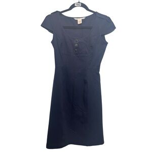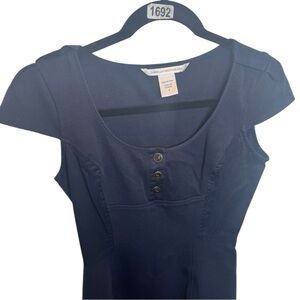 Elevate your wardrobe with this classic and sophisticated Diane von Furstenberg dress. The “Dominette” dress features a timeless black color with subtle navy side panel accents, creating a sleek and flattering silhouette.