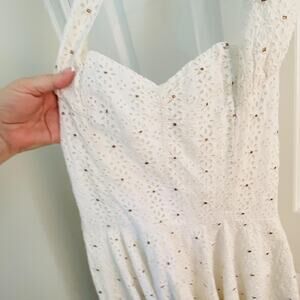 Beautiful white cotton dress with sweetheart neckline and eyelet lace overlay
