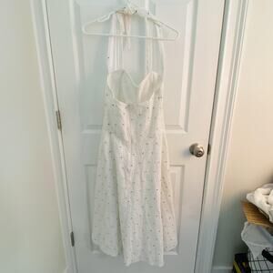 Diane von Furstenberg Dress Womens 10 White Rive Halter Eyelet Embroidered Midi