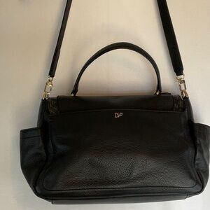 This elegant black handbag is perfect for any occasion. Its sleek design and high-quality materials make it a must-have accessory. The gold accents add a touch of luxury. Pet/smoke free home. Send me an offer. 13”x4.75”x10”