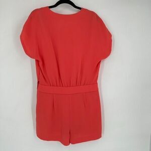 Diane von Furstenberg Emerson Crepe Surplice Romper, Ocean Coral Size 6