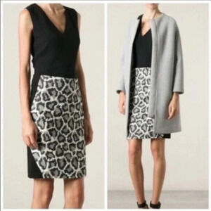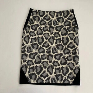 Diane von Furstenberg Emma Leopard Animal Print Side Zip Pencil Skirt Fog