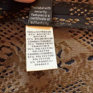 Self: 83% Acetate, 17% Nylon; Combo: 70% Triacetate, 30% Polyester