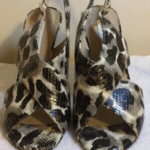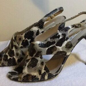 Diane von Furstenberg Graphic Open-Toe Slingback Heels in Snakeskin (8.5B)