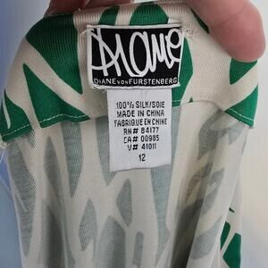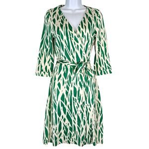 Diane von Furstenberg Julian Wrap Dress Twigs Green White 100% Silk 12