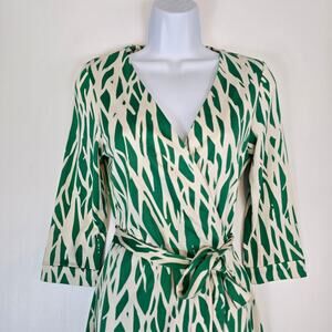 Diane von Furstenberg Julian Wrap Dress Twigs Green White 100% Silk 12