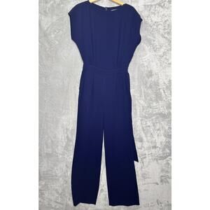 Diane von Furstenberg Jumpsuit Womens 2 Navy Sandra Tie Belt Wide Leg Pockets