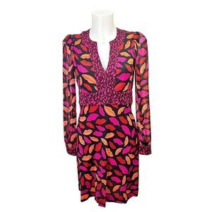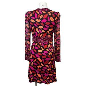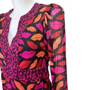 Diane von Furstenberg Leyah Midnight Kiss Silk Dress Mesh puff sleeve sz 0