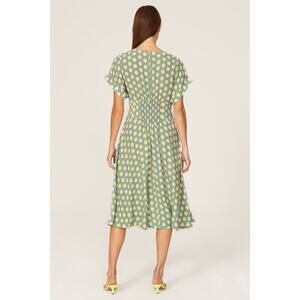 PLEASE SEE SELLER NOTES BELOW Bright yellow polka dots contrast again a baby blue on this lightweight midi from DVF.