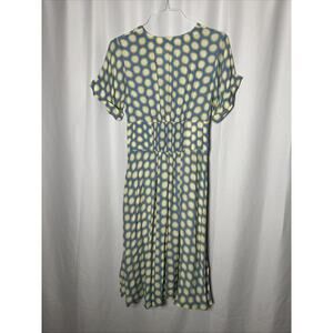PLEASE SEE SELLER NOTES BELOW Bright yellow polka dots contrast again a baby blue on this lightweight midi from DVF.