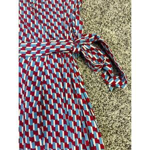 Diane von Furstenberg Maxi Wrap Dress Red White Blue Geometric Print Size S Viscose