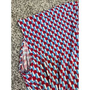 Diane von Furstenberg Maxi Wrap Dress Red/Blue Geometric Print Size S Viscose