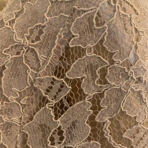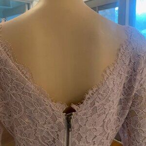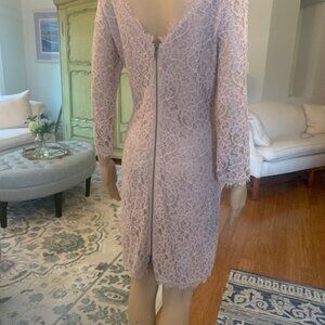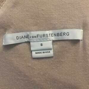 Diane von Furstenberg Zarita mini dress. Size 8. Pristine condition. Worn once for a photo shoot. Perfect for a special occasion, intricate lace pattern in soft beige-mauve lace overlay. Mothers of bride or groom, the color compliments any theme. Figure-flattering, Comfortable soft fabric lines the sleeves. Set-in bracelet length sleeves.